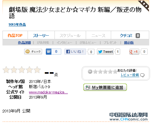 新作剧场版《魔法少女小圆 叛逆的物语》此前就曾被《日经娱乐》杂志泄露将于2013年秋季(9~11月)上映,现在这一情报已经得到官方发表,又有网站泄露出本作的上映日期。根据“映画生活”网站提供的资料,本作将于2013年9月上映!