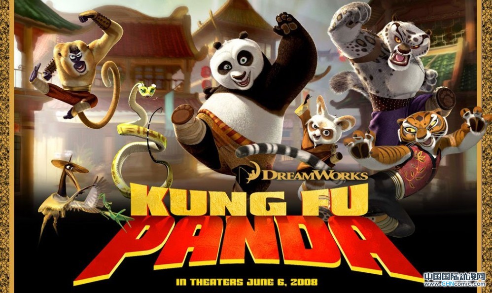 动画电影《功夫熊猫》中所有的一切都是浓浓的中国元素,大段留白写意的中国山水画风格的场景,动画人物的造型和设计,甚至还有那shifu(师父),wugui(乌龟),majiang(麻将),binggun(冰棍)等一些你一听就懂的英语发音。动画电影《功夫熊猫》中最精彩的应该还是阿宝参加小熊猫师父主办的绝世神功速成班,并开小灶的那段,充满了向邵氏武侠和成龙电影致敬的经典桥段。