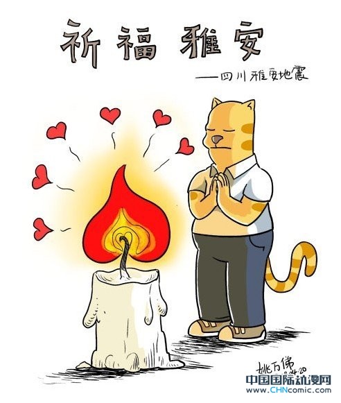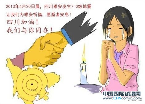 与此同时,各界名人和网友用各种行动表达自己对四川雅安地震震情的关注。动漫名家也用自己的画笔紧急行动,期盼在这“黄金24小时”内带给大家给多的力量,让我们一起为四川雅安地震灾民祈福!