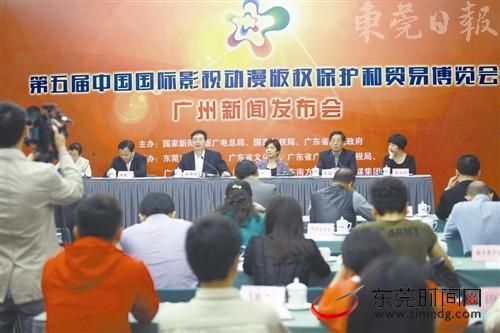 昨日(22日)上午,第五届中国国际影视动漫版权保护和贸易博览会(以下简称“漫博会”)在广州召开首次新闻发布会。本报记者从新闻发布会上获悉,第五届漫博会将于今年8月22日至26日在东莞市国际会展中心和松山湖展贸中心举行,目前招商工作已经启动。本届漫博会执委会副主任委员兼秘书长、市委常委、宣传部部长潘新潮等出席发布会并回答了记者提问。