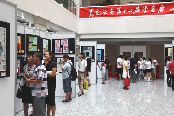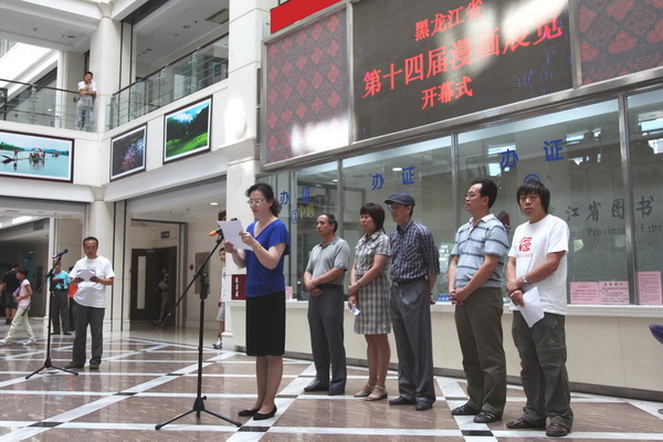 由黑龙江日报文体新闻中心,黑龙江省图书馆,黑龙江省美术家协会,共同举办的黑龙江省第14届漫画展览,8月2日上午在省图书馆隆重开幕。