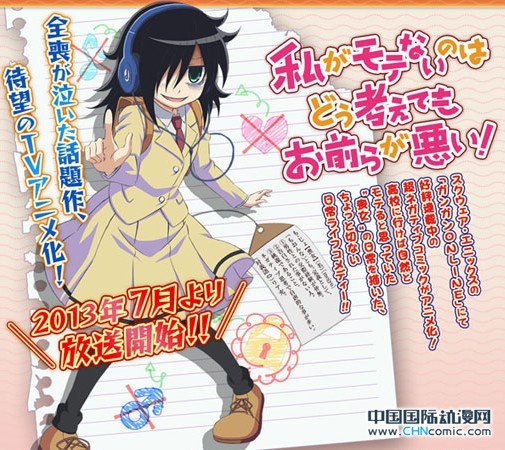 去年12月宣布动画化的「丧女」(原名:我不受欢迎,怎么想都是你们的错!)现在公开了最新情报,进一步确定将以TV动画的形式推出,并预定于今年7月开始播放。
