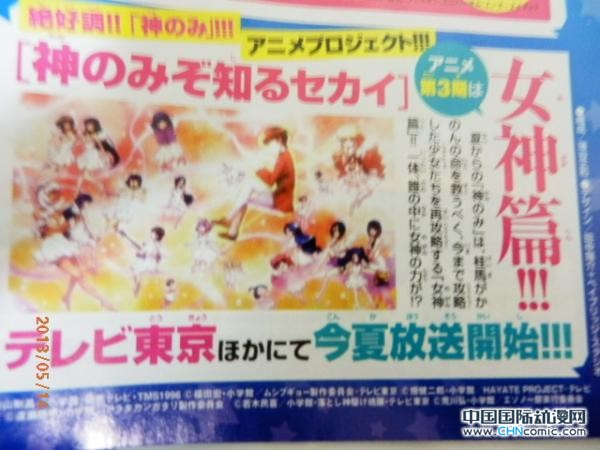 据最新杂志情报,系列动画《只有神知道的世界》TV版第三期确认讲述原作“女神篇”剧情,将从今夏(13年7月)开始在东京电视台等台播出。