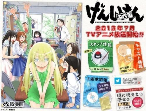 漫画《现视研》由木尾士目创作,是一部描写了“现代视觉文化研究会”成员日常生活的写实风格秋叶原系青春物语。《现视研 二代目》作为《现视研》的续篇漫画,从2010年开始在《月刊Afternoon》连载至今,2013年初宣布TV动画化,由《少女与战车》《现视研OVA》的水岛努担任监督,动画制作为Production I.G,将从7月开始在TOKYO MX等台播出。