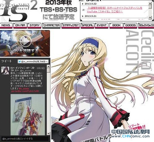 据《IS》动画官网更新消息,续篇动画《IS2》将于2013年秋(10月)在TBS、BS-TBS电视台开播!原作轻小说《IS》由弓弦逸鹤执笔,目前出版至第8卷。新作动画《IS2》将沿用第一期菊池康仁担任监督、8BIT负责动画制作的阵容,角色设计则变为《生徒会的一存》《茜色染红的坂道》的堀井久美。