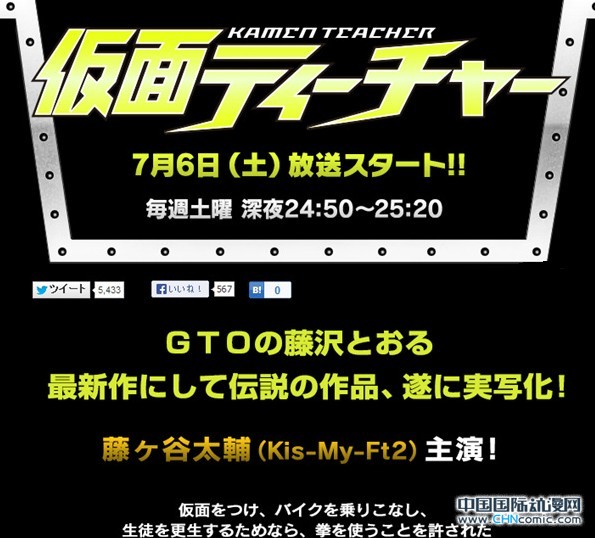 藤泽亨的经典漫画名作GTO曾在过去改编过真人日剧,现在,藤泽亨另一部漫画「假面教师」也宣布真人剧化!电视剧将由Kis-My-Ft2成员藤谷大辅主演,预计于7月6日深夜24:50在日本NTV播出。