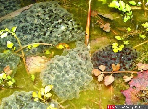 “这些是我家的,出生前团在一起,看上去像西米露。” (青蛙妈妈产的卵形如球状)