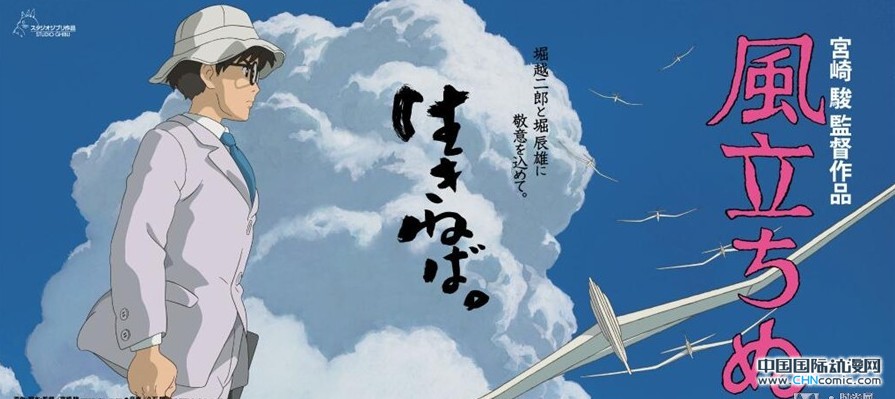 吉卜力工作室日前陆续曝出了宫崎骏的最新力作《起风了》的四款横版主题新海报,这四款主题海报将在日本影院进行展映。这四款海报从不同角度揭示了主人公少年堀越二郎对梦想的追逐与思考,以及他与少女的相遇片段。《起风了》将于7月20日在日本全国公映。