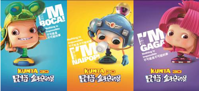 《昆塔:盒子总动员》主人公菠菜、奶泡泡、GAGA形象海报。