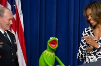 《布偶大电影2》中的青蛙卡米特这次有福了,不但跟随电影《布偶大电影2》走进了白宫跟军队官员的孩子们“玩成一片”,还跟第一夫人米歇尔·奥巴马亲密接触,又亲手又调侃“艳福不浅”。《布偶大电影2》在线播放地址:http://movie.chncomic.com/show-670.htm...