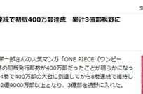 据《每日新闻》报道,尾田荣一郎人气漫画《海贼王》单行本第71卷在8月2日发售,这次单行本的初版发行量仍然维持在400万本,这也是继2011年发售的第64卷之后,系列漫画连续8卷初版发行量在400万本以上。《海贼王》单行本的初版发行量在2010年3月发售的第57卷时达到了300万本...