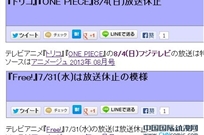 据《Animage》杂志8月号消息,富士电视台周日早间档动画《海贼王》《美食的俘虏》将于8月4日停播一次,因为8月3日18:30~8月4日20:54富士电视台将播出长达26小时24分的特别节目《FNS27小时电视女子力全开2013女孩子的笑颜铸就明天》。该娱乐节目自1997年开始...