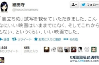 宫崎骏新作《起风了》的试映会结束以后,观看完这部作品的著名动画监督细田守在推特上发表看法,对《起风了》这部动画电影赞不绝口。细田守监督说:“我刚刚参加了《起风了》的试映会。这部动画太棒了,以前从来没有过,甚至让人感觉今后恐怕也难以超越”。如今也已成长为日本著名动画导演的细田守,对...