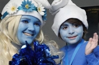 6月22日,在比利时首都布鲁塞尔,女子和男童化装成“蓝精灵”参加纪念活动。当天,布鲁塞尔举行活动纪念享誉世界的“蓝精灵”之父皮埃尔·库利福德诞辰85周年,同时启动3D电影《蓝精灵2》的推介活动。《蓝精灵2》将于7月31日在美国上映。在比利时首都布鲁塞尔火车南站,一列前往巴黎的“蓝...