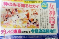 本年度第24号《少年周刊Sunday》刊物上正式确认了即将在7月开始放送的第3季《只有神知道的世界》的故事主线,第3季将进入原作漫画第7卷开始的长篇“女神篇”。作为「周刊少年SUNDAY」作品动画化企划之一的「只有神知道的世界」动画第3期,近日确定了具体的播出时段。在推特中,有F...