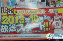 根据周刊少年JUMP最新情报显示,人气篮球漫画《黑子的篮球》第二季动画已正式决定从今年十月开始播出!《黑子的篮球》是藤卷忠俊创作的篮球运动漫画,从09年开始在《周刊少年Jump》开始连载,第一季动画由ProductionI.G制作,去年4月开始播出。现在随着第二季档期的决定,其实...